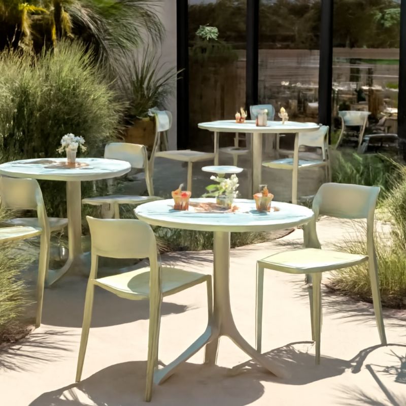 Mesa resistente y duradera para uso exterior e interior, fabricada en polipropileno de alta resistencia. Ideal para climas extremos, rayos UV y ambientes salinos. Altura ajustable en dos niveles y disponible en seis colores: blanco, gris, café, negro, verde agave y ámbar. Soporta hasta 5 kg. Perfecta para jardines, terrazas, cafeterías y espacios comerciales. Diseño moderno, funcional y fácil de limpiar.